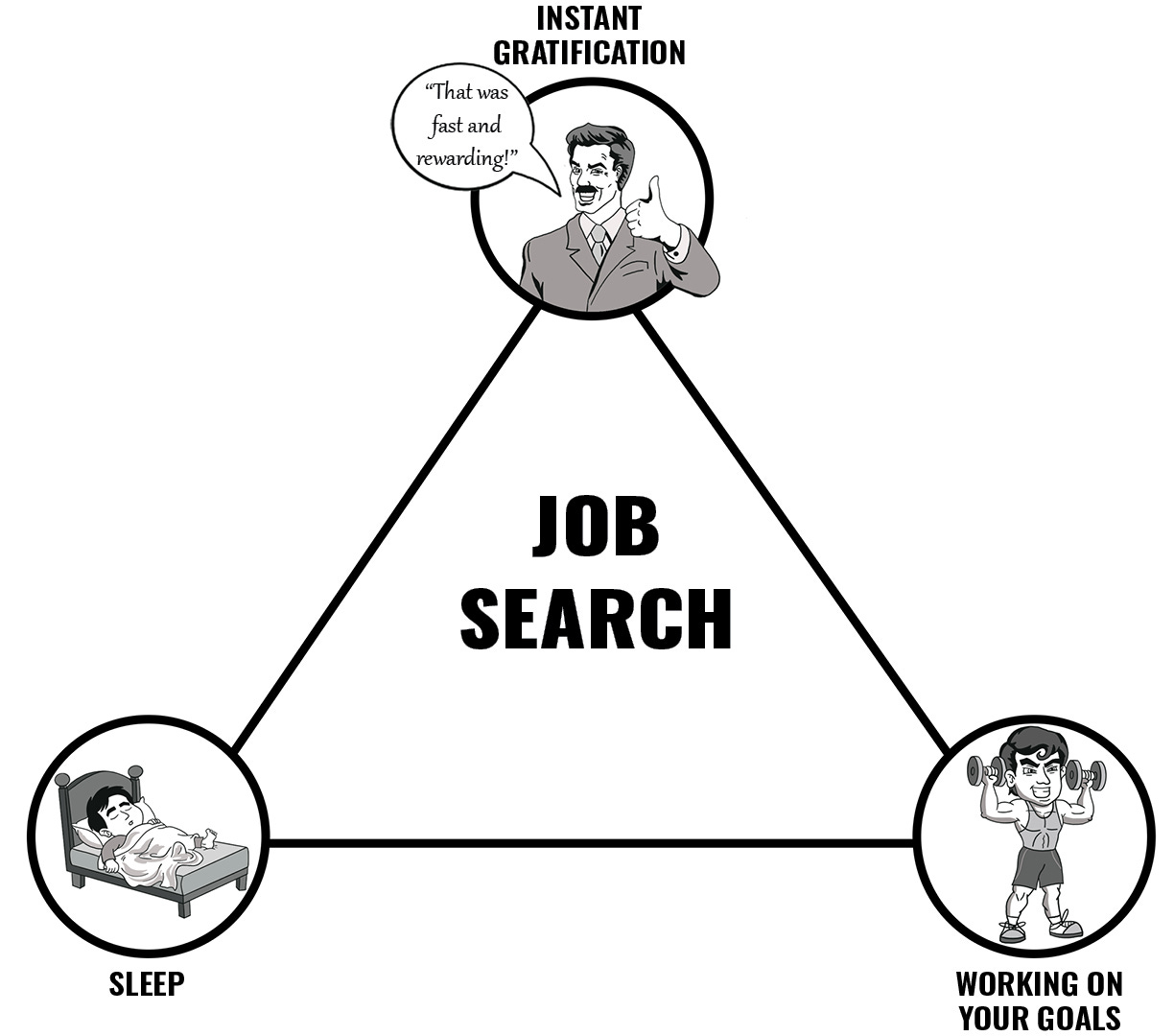 Substitute “job search” for any long-term goal, and you have the modern struggle.