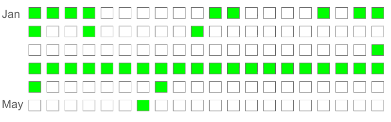 While videos and goals and books are better than making zero effort, let’s examine the case of Cathy. Cathy faces a problem. Cathy’s 2026 goal was to read one page per day from a book.2 It’s been hard, though. Here is the chart of her January days.