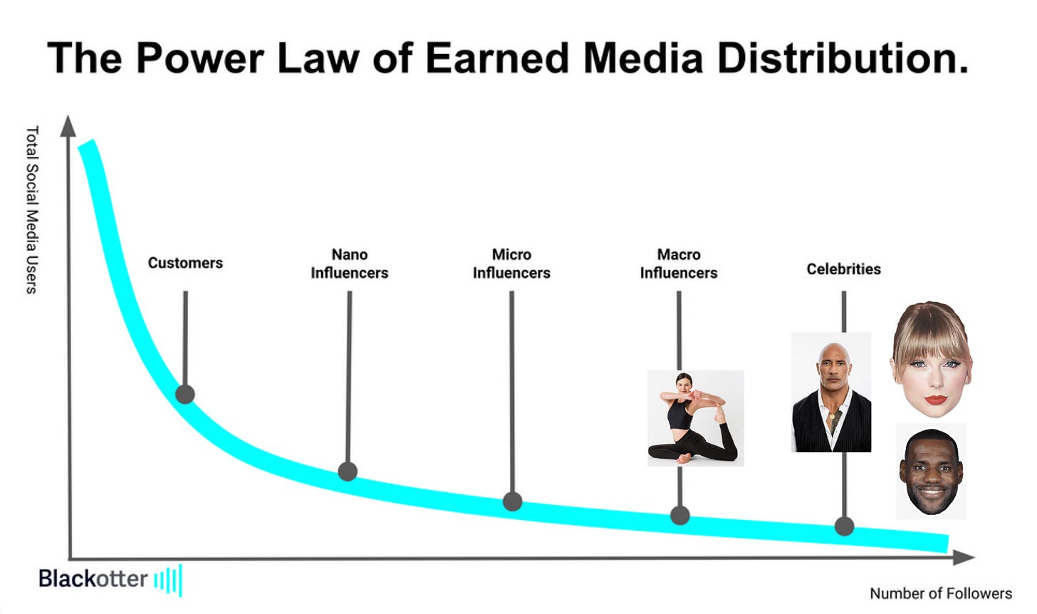 The creators at the top of that power law can monetize their attention, so we call them “influencers”
